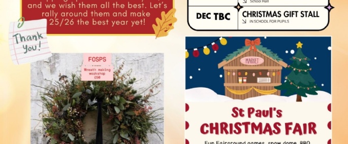 Don't forget to keep up with the news on the FOSPS Instagram account @stpaulsfosps and via your class WhatsApp.