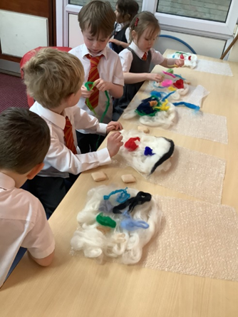 During Arts Week, RKP very much enjoyed making their own felt with Sabine. We also had fun making colourful pasta jewellery with Mrs King and experimenting with powder paint linked to Holi festival with Mrs Kelly-Jay.